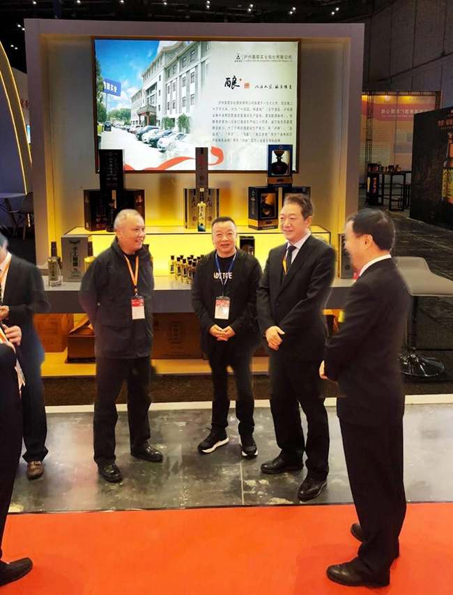 白酒專家胡永松教授(右二),瀘州市酒業(yè)促進(jìn)局局長(zhǎng)任小波(左二)在公司董事長(zhǎng)魏云飛(右一)陪同下指導(dǎo)公司工作。